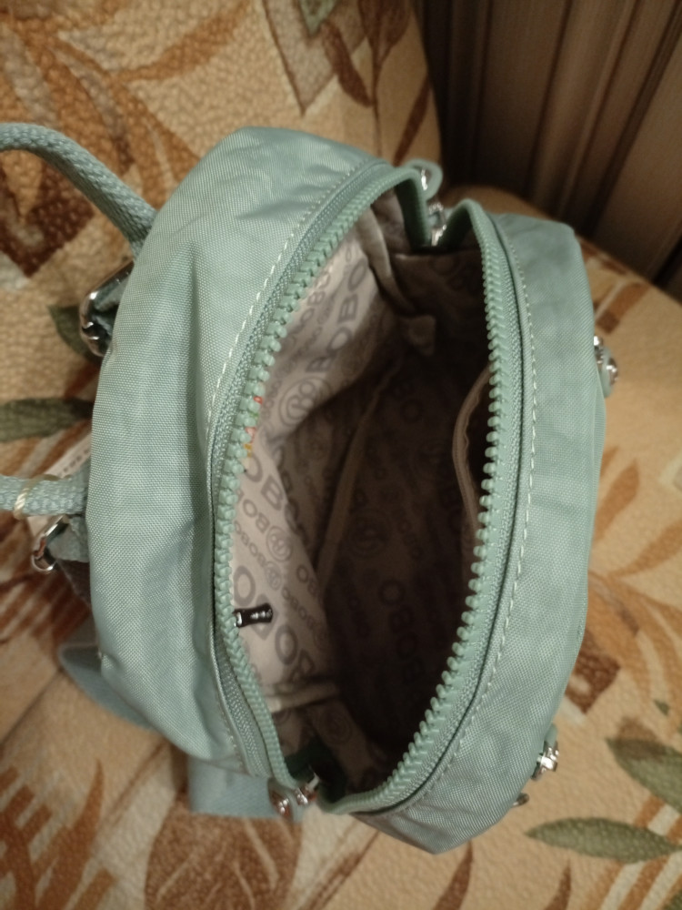Рюкзачок очень функциональный. Красивый цвет, качественный пошив. Внутри есть два кармашка, спереди и сзади тоже. Можно носить, как сумка и как рюкзак. Рекомендую.