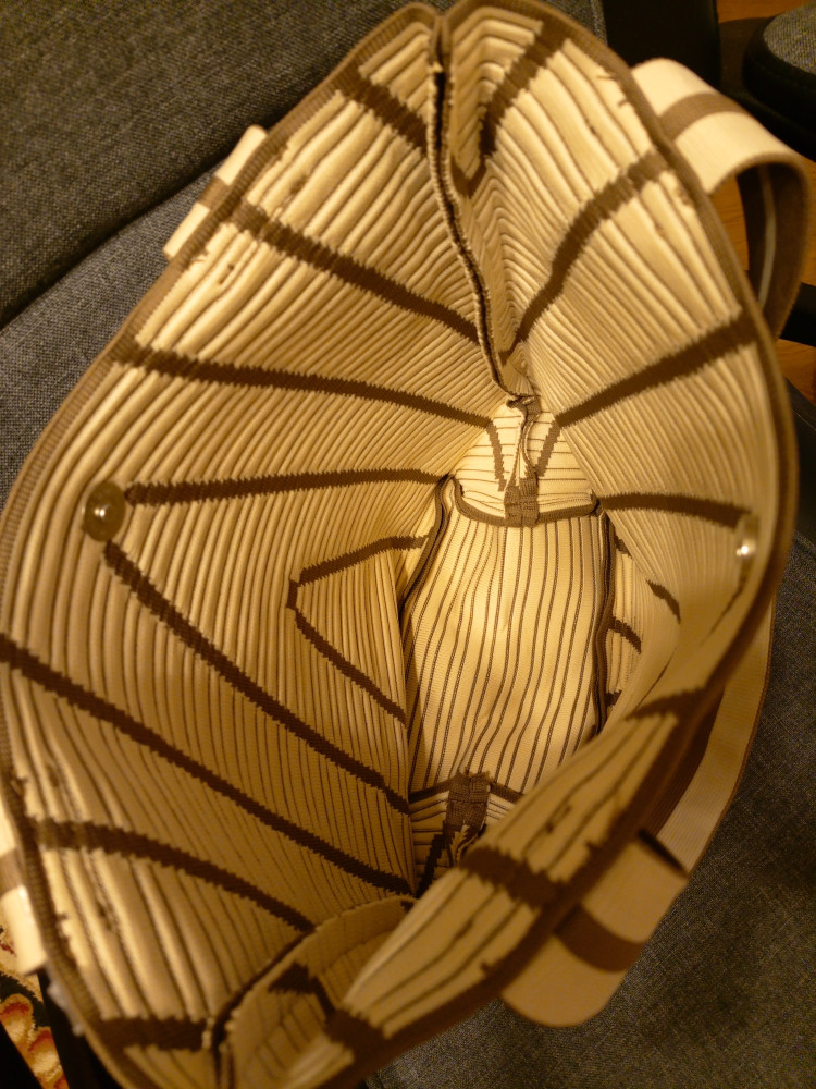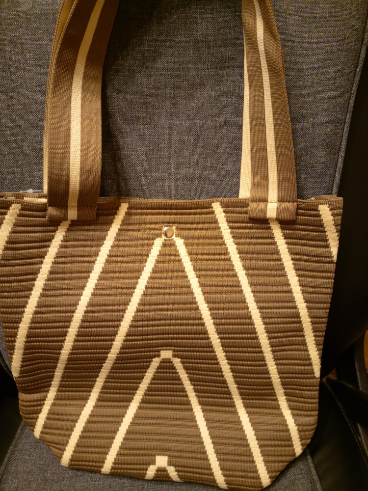 Этот шоппер привлек меня своим дизайном, приятная расцветка. Очень аккуратно смотрится на плече. Вместительная, выдержит вес вещей, которые так необходимы в дороге. Документы А4 и книги можно положить внутрь и не бояться, что они помнутся. Выглядит красиво, хорошая замена пластиковым пакетам.