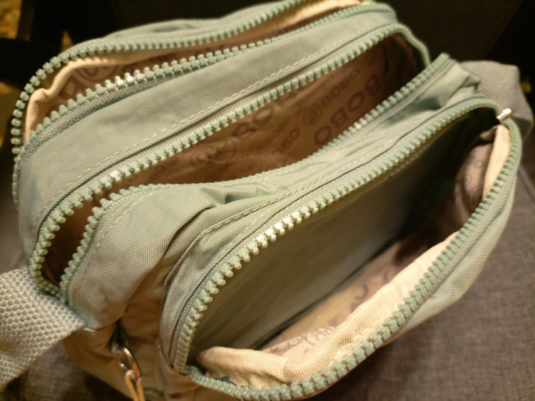 Мною куплено уже несколько сумок от Bobo - разных размеров, для себя и в подарок. Это очередная покупка, очень понравился цвет. В дорогу или для поездки за город очень удобная, несмотря на небольшой размер. Несколько отделений, в которые помещаются всё необходимое - документы, телефон и прочие мелочи, включая бутылочку воды или небольшой зонтик. Красивый мятный цвет, хорошая плотная ткань (мне нравится больше, чем та, на которую бренд Bobo сейчас перешел). Рекомендую.