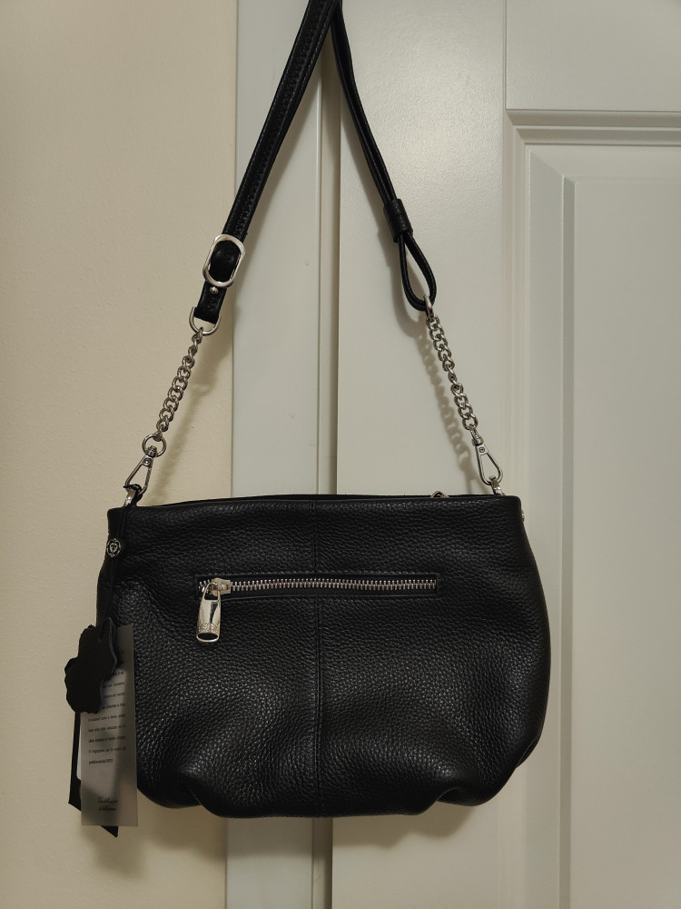 У меня их уже несколько. Эту сумочку я использую как выходную. Ее можно носить по-разному. И кожаной стороной и замшевой. В зависимости от остального образа. Очень красивая и удобная!