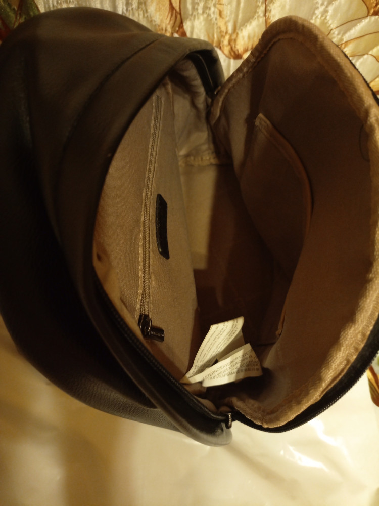 Имеет одно отделение с внутренними карманами для документов и мелочей. Застёгивается на молнию.